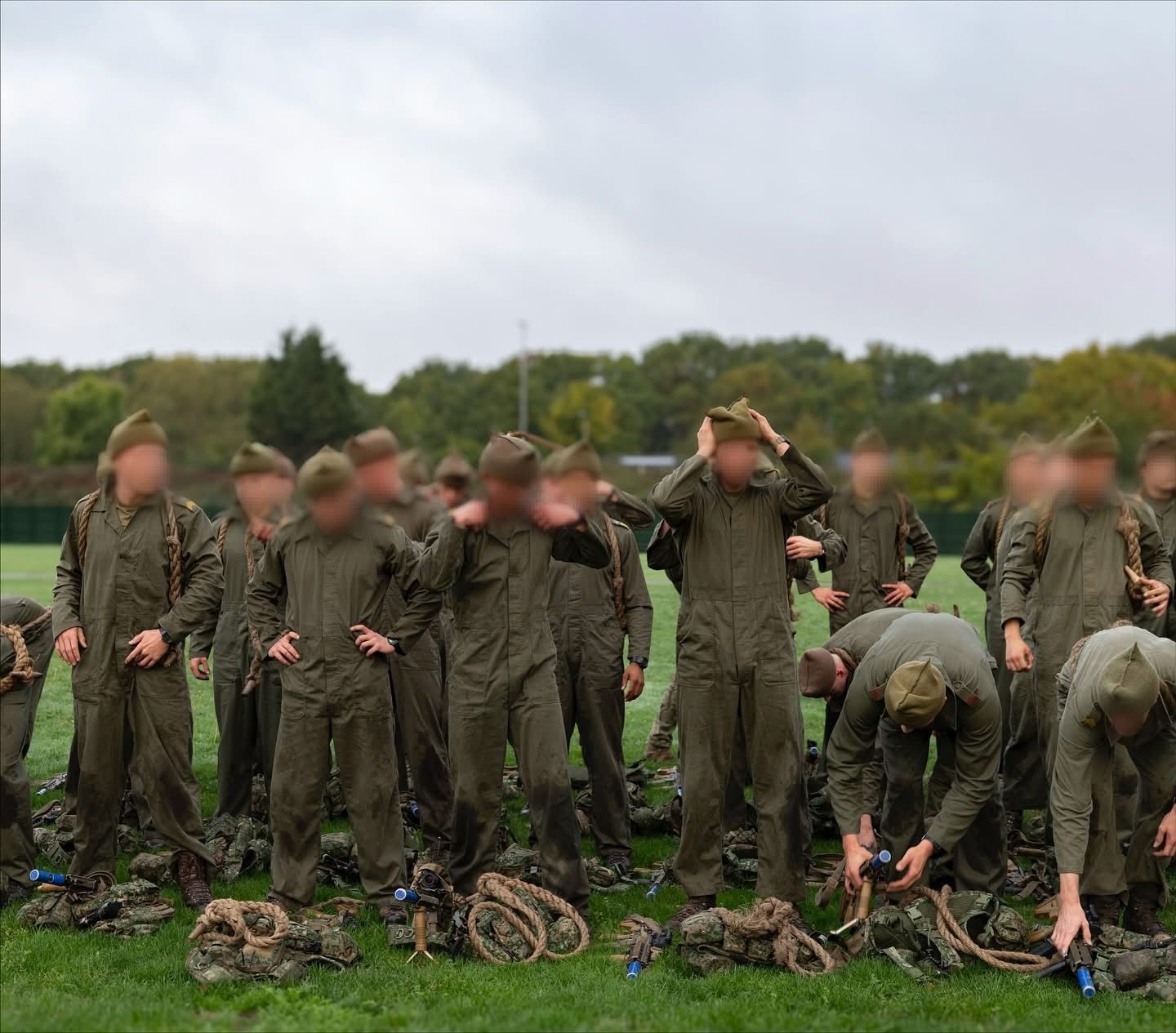 De transformatie begint bij de baret-exercitie. Hun oude baret verdwijnt en maakt plaats voor de iconische mutsdas. Samen met de tokkel en de overal wordt dit hun uniform voor de komende weken — een tenue met roots in de Tweede Wereldoorlog, dat het Korps Commandotroepen nog steeds met fierheid draagt.